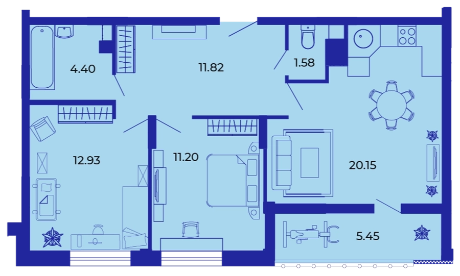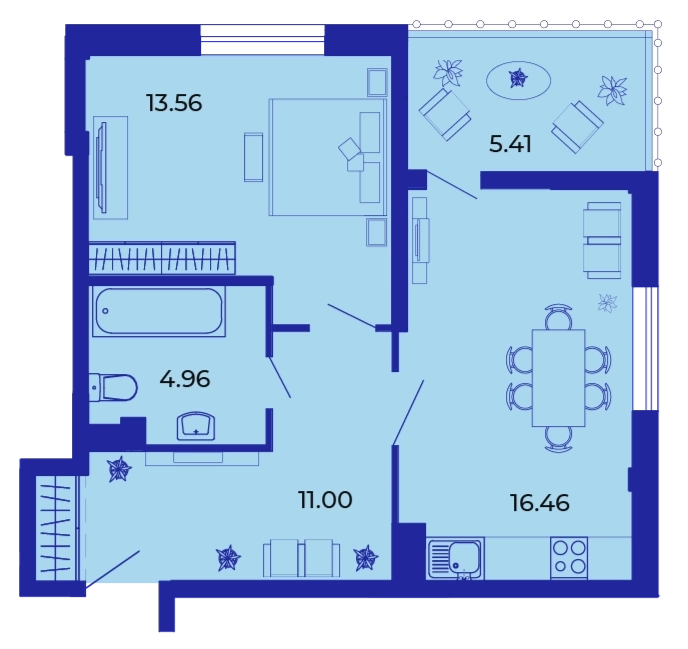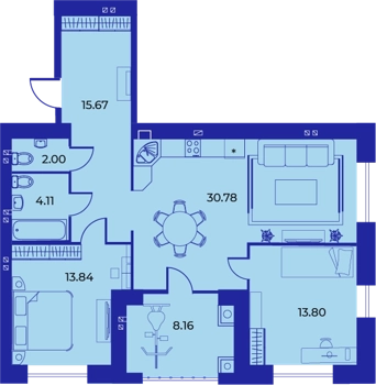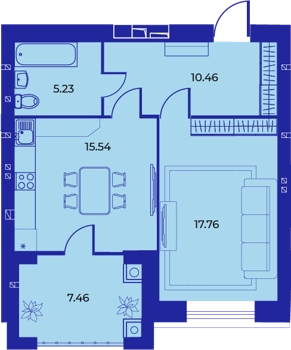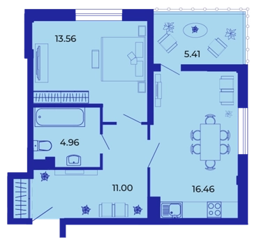 Площадь от 51.1 м2