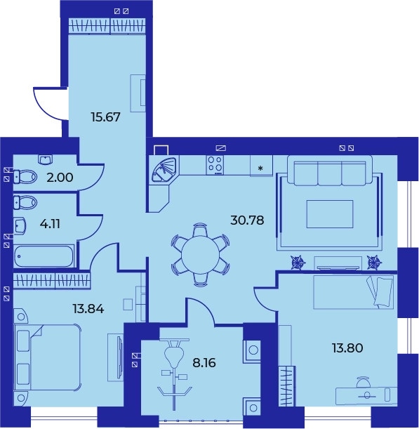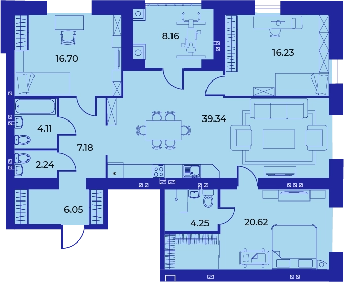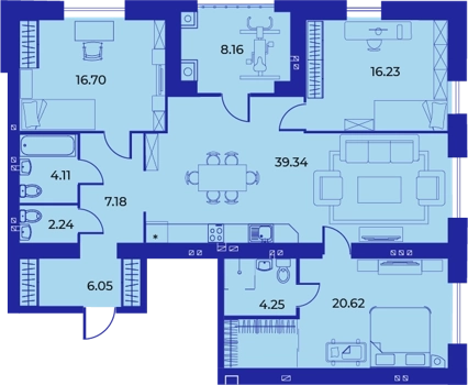 Площадь от 124.5 м2