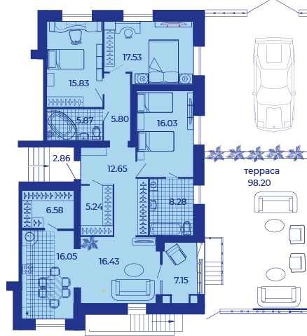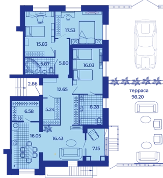 Площадь от 66.4 м2
